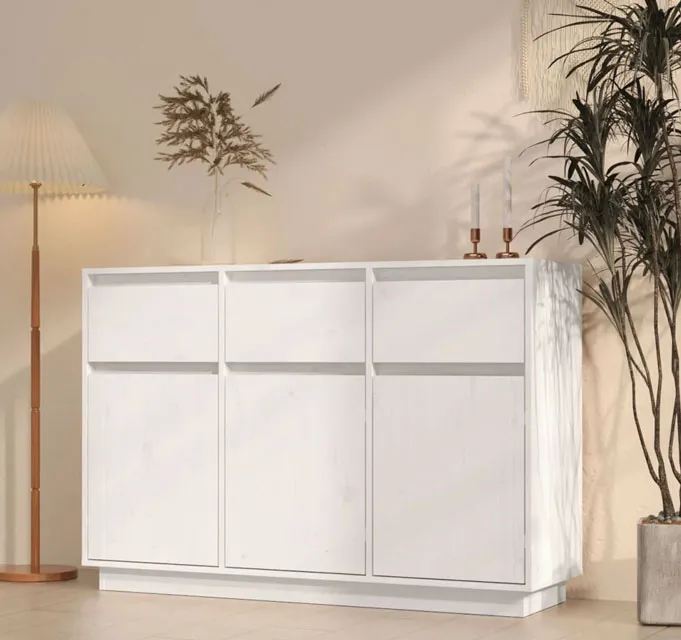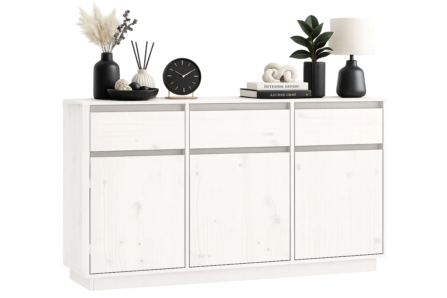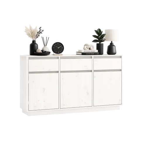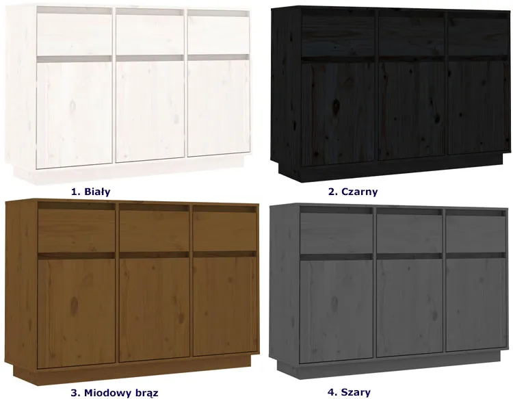 Dotyczy: Szara komoda sosnowa z 3 szufladami i szafkami - Olviso