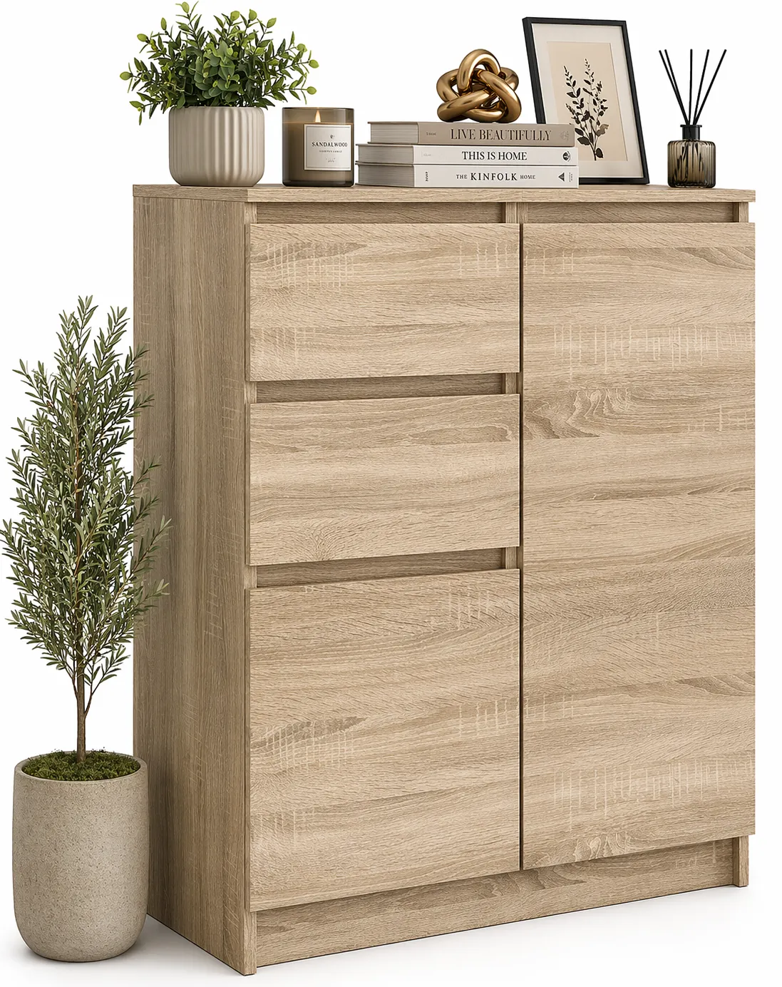 Dotyczy: Nowoczesna komoda z szufladami i szafką dąb artisan - Nanis 2X