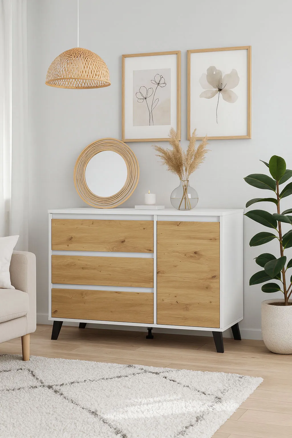 Dotyczy: Biała komoda z szafką i szufladami - Bilgo 3X