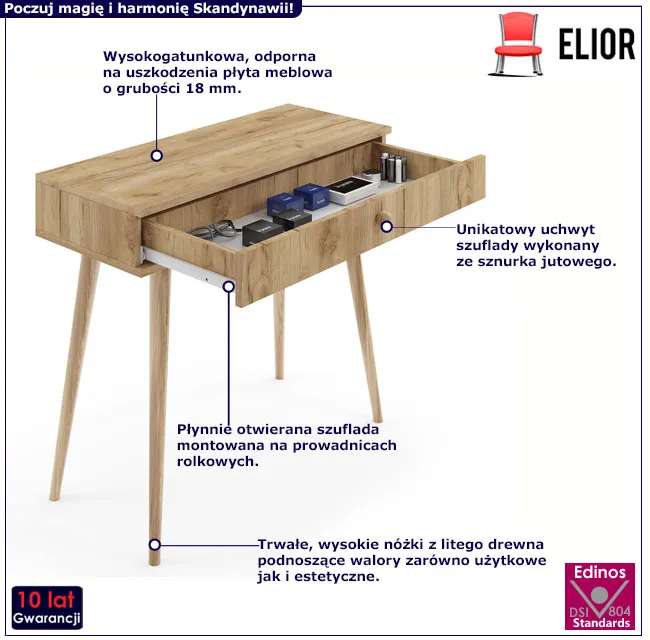 • praktyczne biurko do pracy i nauki w pokoju lub gabinecie