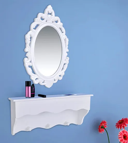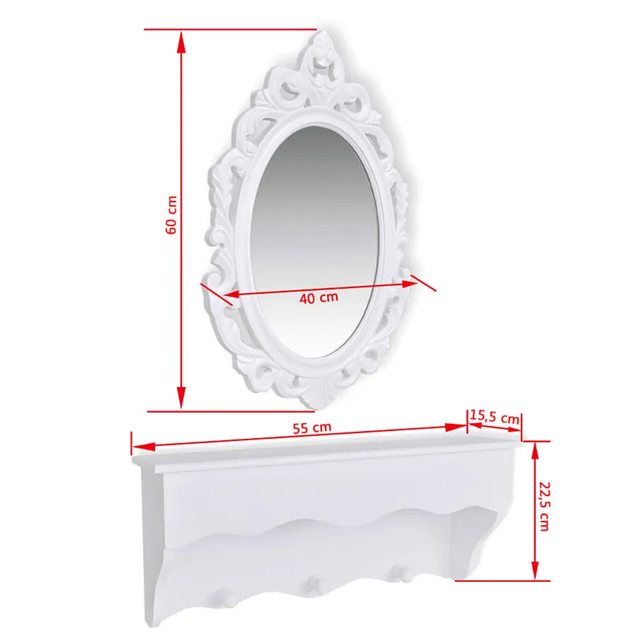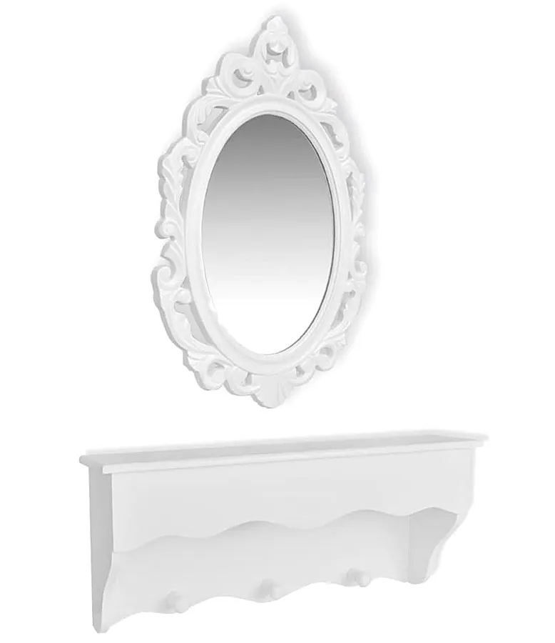 Biały zestaw lustro i półka na klucze Garka