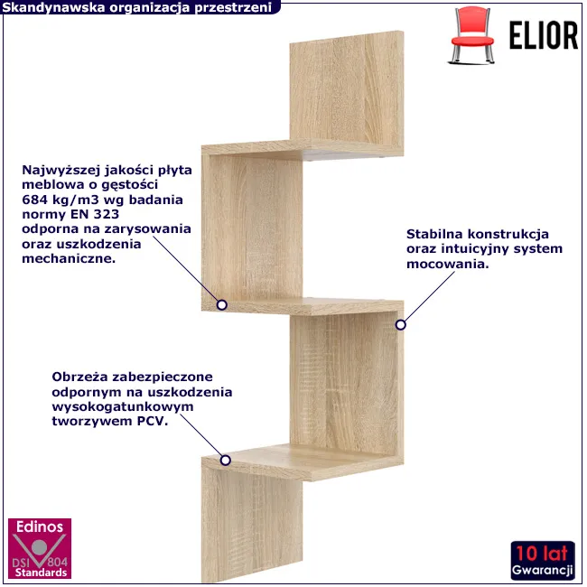 • Kolor: dąb sonoma. W naszej ofercie posiadamy także inne półki narożne. Kliknij i stwórz swój wyjątkowy zestaw mebli.