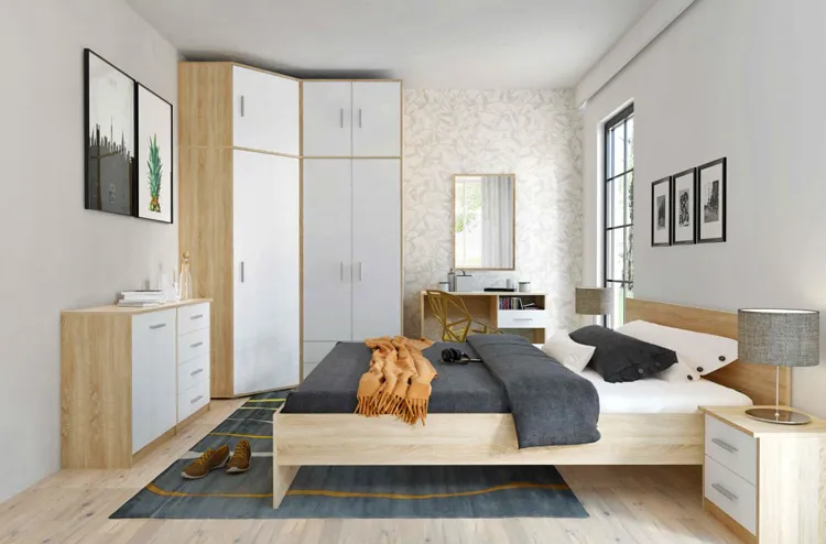 Zobacz jak fantastycznie prezentuje się narożna szafa Xato 4X marki Elior w kolorze dąb sonoma + biały: