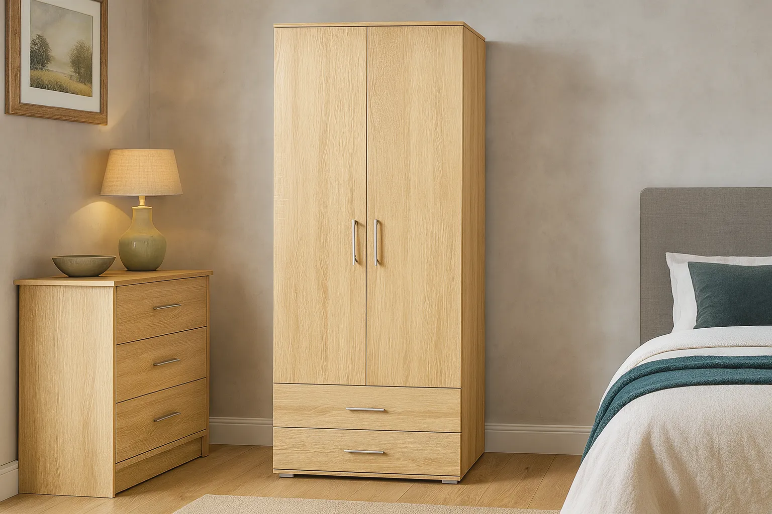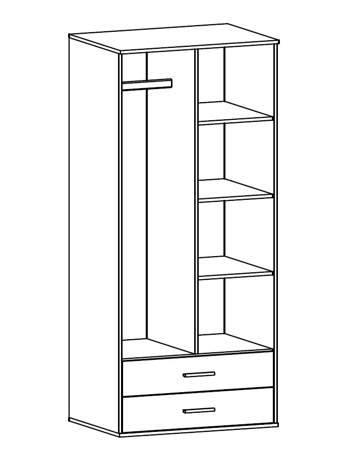 Szafę Foni 3X marki Edinos Premium wykonaliśmy z najwyższej jakości 16 mm laminowanej płyty meblowej o klasie higieny E1. Tył mebla został wykonany z trwałej i odpornej na odkształcenia płyty HDF. Obrzeża szafki zostały precyzyjnie oklejone specjalistyczną okleiną PCV 0,6 mm o zwiększonej odporności na ścieranie i wilgoć. Wnętrze mebla zostało zorganizowane w przemyślany i funkcjonalny sposób. Trzy pojemne, zamykane półki uporządkują koszulki, spodnie lub sukienki. Drążek to idealne rozwiązanie do zawieszenia koszul, płaszczy czy żakietów, które zawsze będą wyprasowane. Dwie praktyczne szuflady na metalowych prowadnicach rolkowych, to dodatkowe miejsce do zagospodarowania na bieliznę. Tak zaprojektowana szafa Foni 3X marki Edinos Premium to przepis na porządek w garderobie!