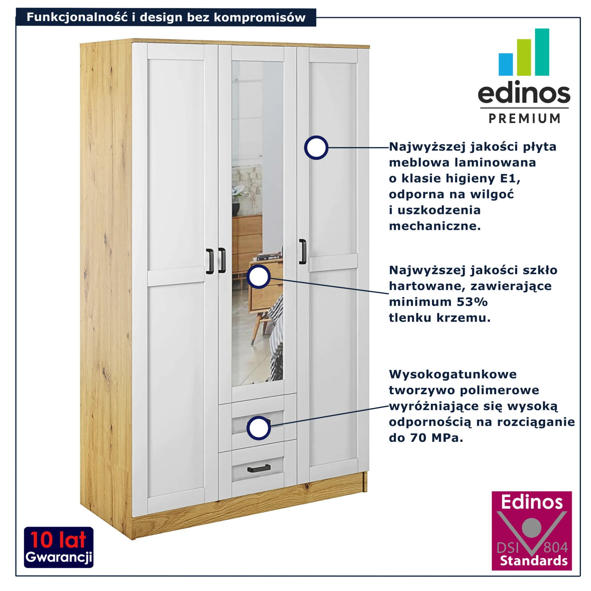 Zamawiając produkt w sklepie Edinos.pl otrzymujesz 100% gwarancję satysfakcji. Jeśli uznasz, że produkt zakupiony u nas nie spełnia Twoich oczekiwań, możesz zwrócić go do nas w ciągu 100 dni od daty zakupu, a my oddamy Ci pełną kwotę zamówienia. Ustawowo czas ten wynosi tylko 14 dni, ale jesteśmy tak pewni Twojego zadowolenia z naszych produktów, że postanowiliśmy wydłużyć ten termin do 100 dni, bo wierzymy, że dobre wnętrze nie potrzebuje słów. Czasem wystarczy jeden mebel, by poczuć się naprawdę u siebie. Dlatego tworzymy rzeczy, które nie dominują – ale współistnieją z Tobą. Są trwałe, wygodne, piękne w prostocie. Dają wolność wyboru i spokój w codziennym życiu. Dziekujemy za zaufanie.