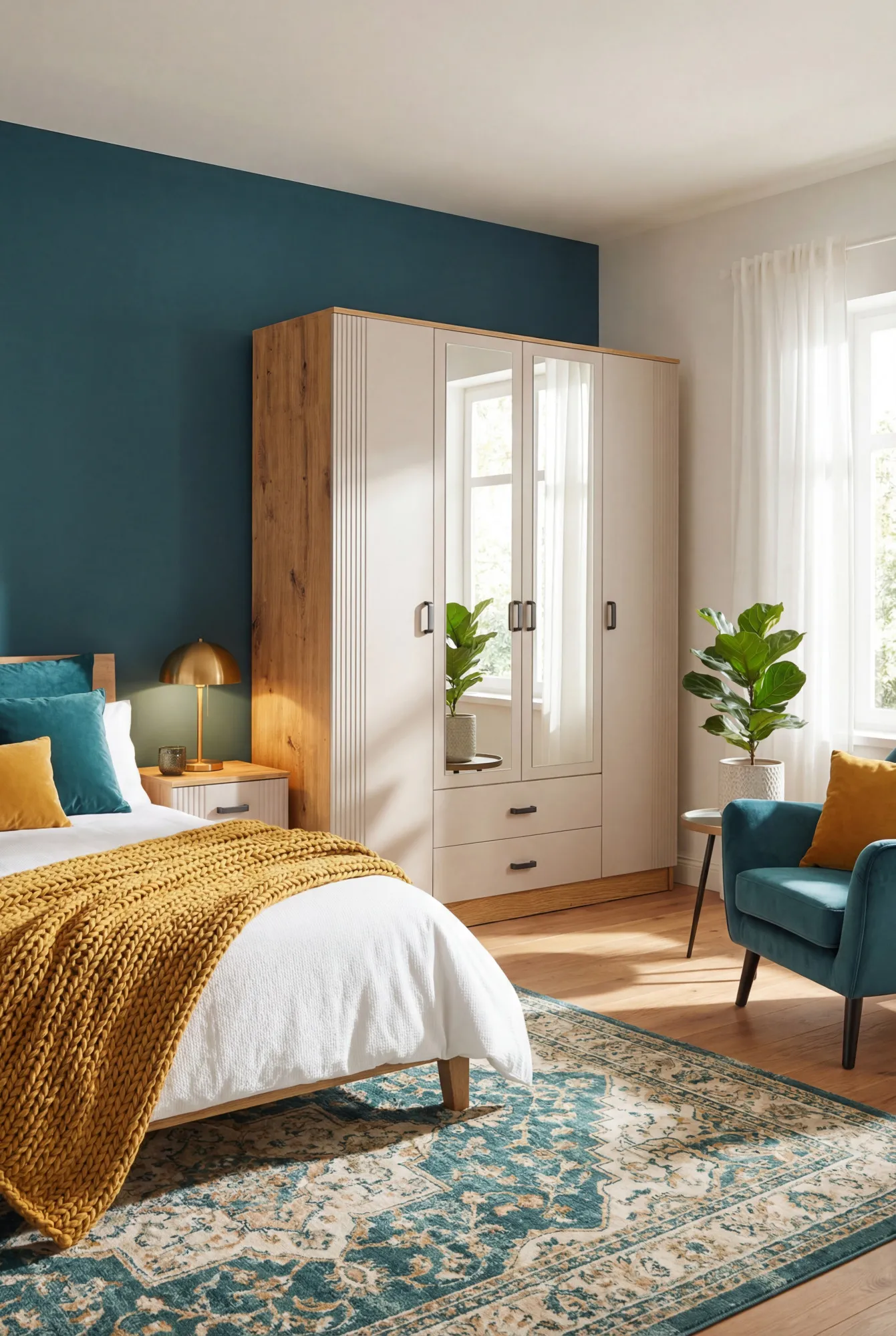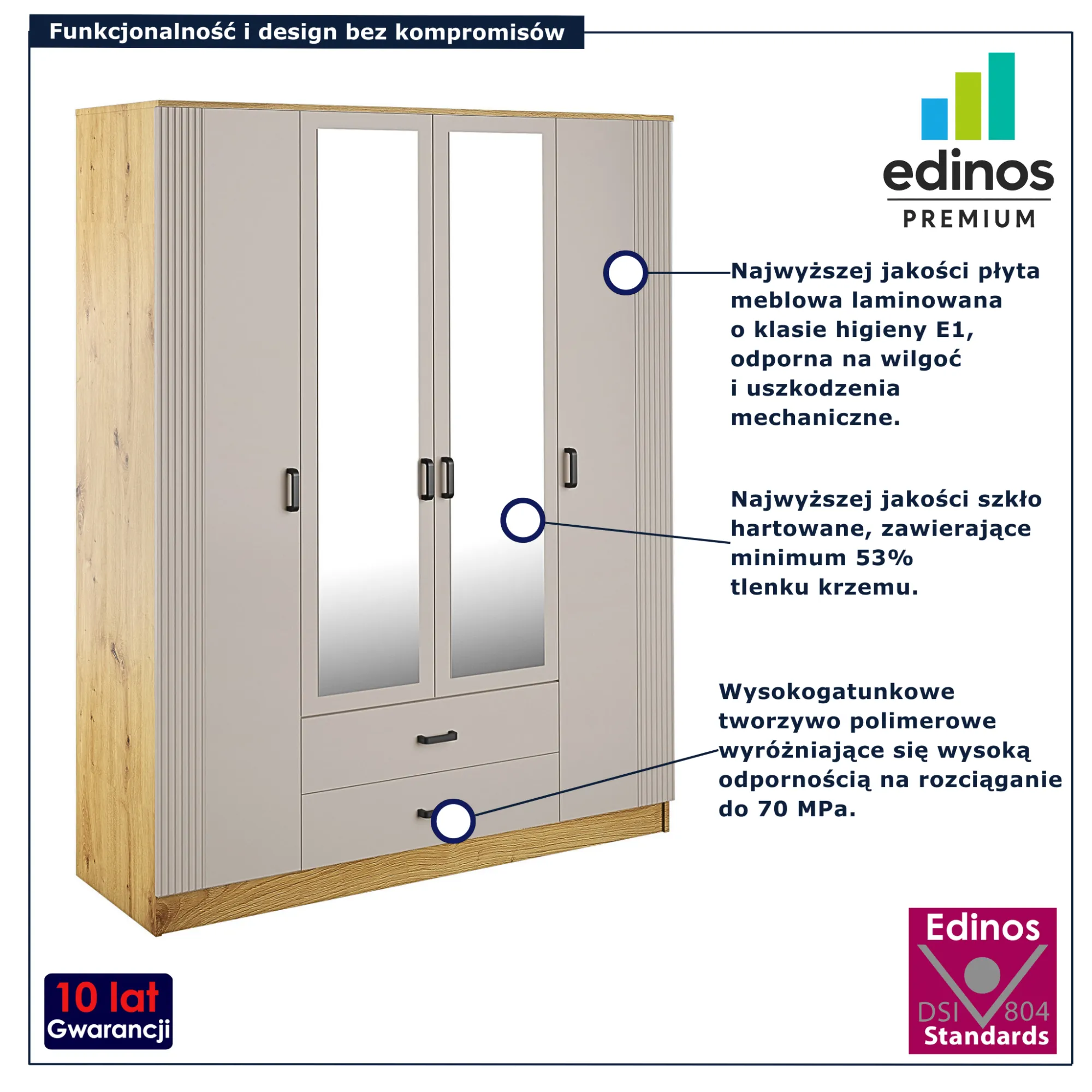 Dotyczy: Kaszmirowa czterodrzwiowa szafa uchylna z lustrem - Veloris