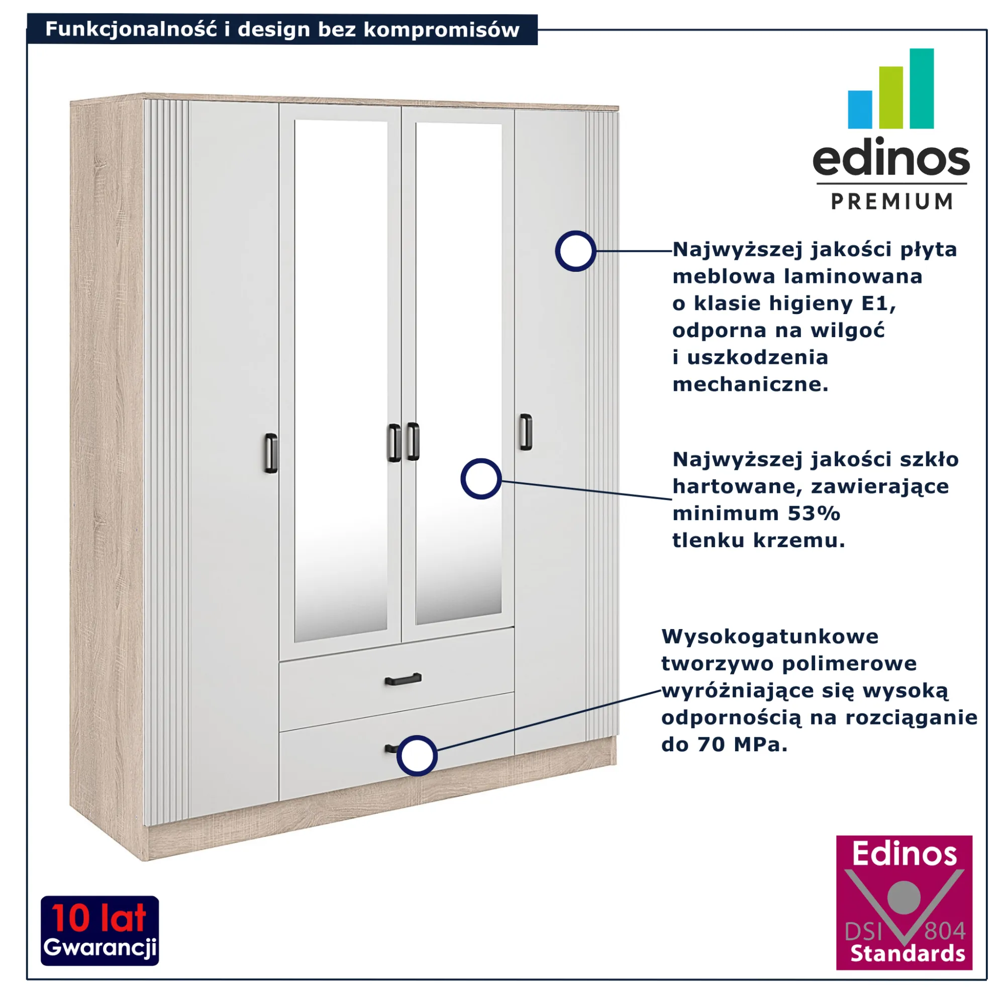 Dotyczy: Kaszmirowa czterodrzwiowa szafa uchylna z lustrem - Veloris