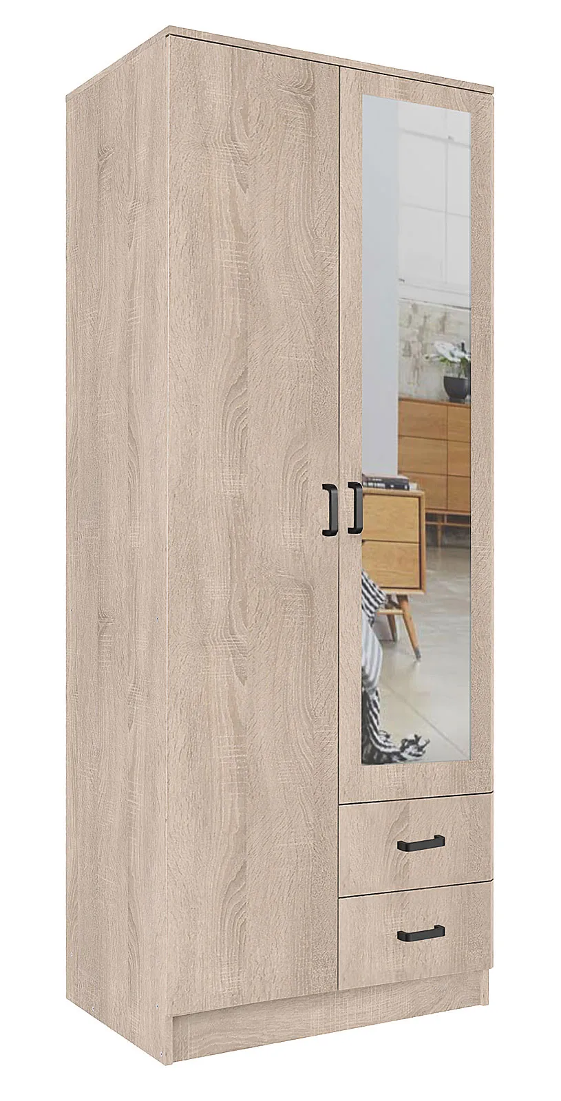 Skandynawska szafa z lustrem w kolorze dąb sonoma - Larimox