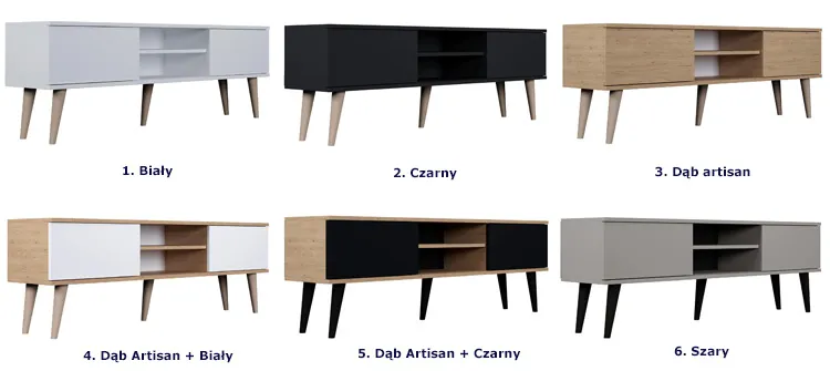 Szafka RTV Dubby 5X dostępna jest w pięciu wersjach kolorystycznych. Jeśli jesteś zainteresowana innym kolorem, kliknij tutaj