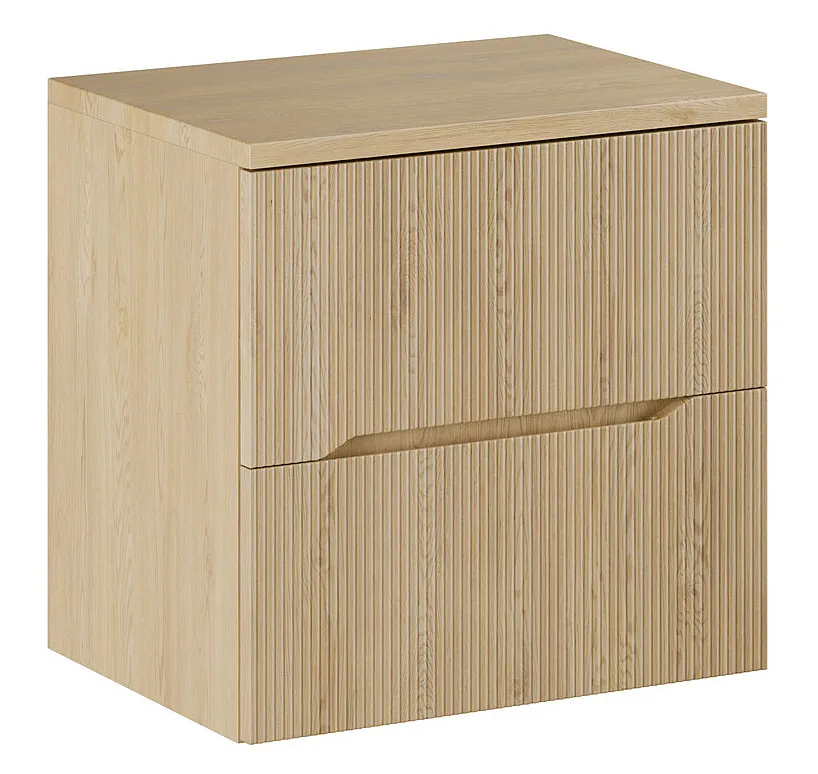 Kolekcja Linesso to propozycja dla miłośników naturalnych materiałów, spokojnej kolorystyki i nowoczesnej prostoty. W jej skład wchodzą różne warianty szafek pod umywalkę – zarówno modele nablatowe, jak i klasyczne zintegrowane z blatem – oraz dopasowany słupek wiszący. Wszystkie elementy łączy pionowe frezowanie frontów, ciepły odcień drewna i bezuchwytowe otwieranie, które nadają całości subtelny i ponadczasowy charakter. Linesso sprawdzi się doskonale w jasnych, minimalistycznych łazienkach, w których liczy się zarówno styl, jak i funkcjonalność.