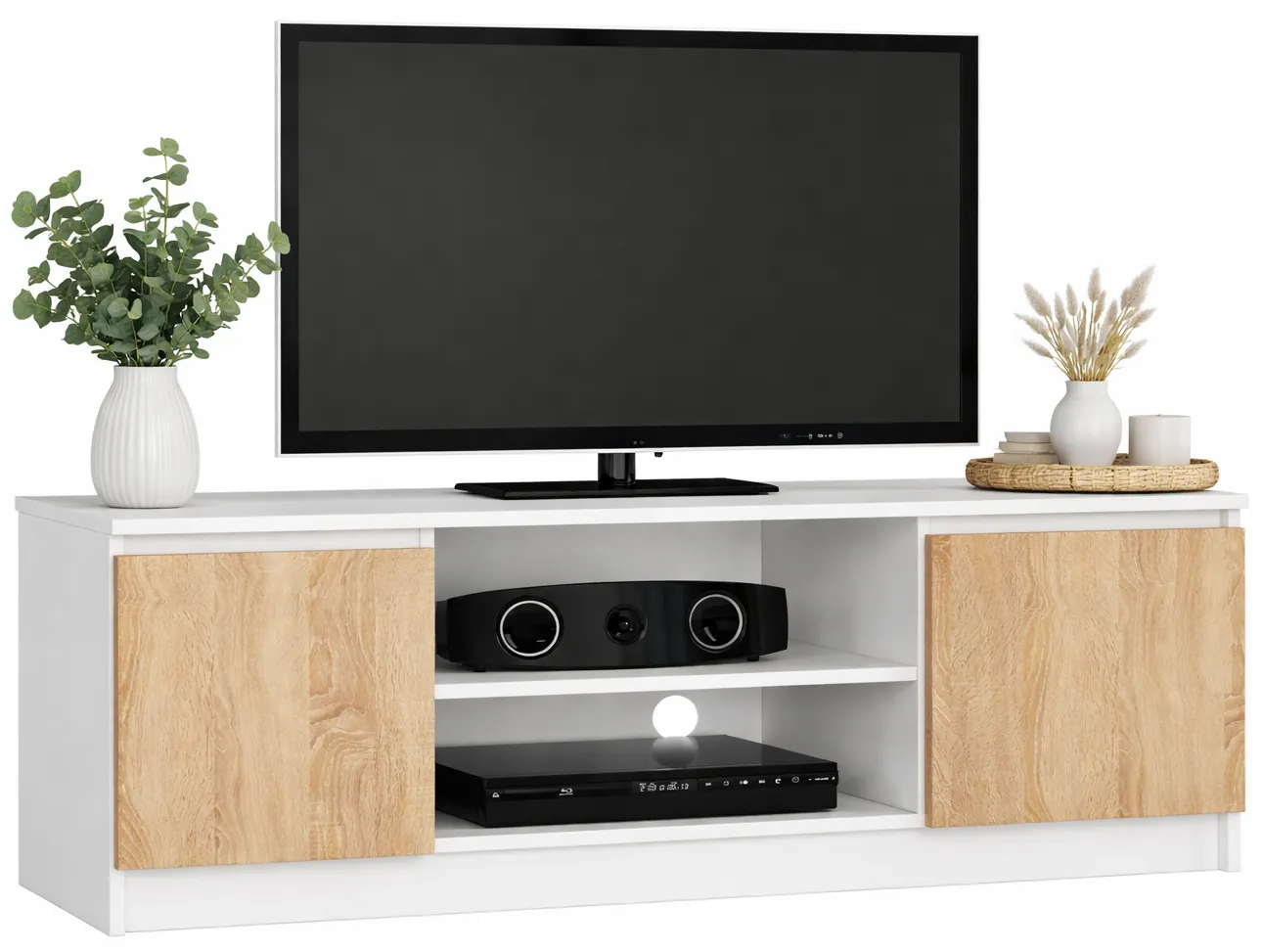 Dotyczy: Skandynawska szafka RTV dąb sonoma + biały - Galapi 3X 120 cm