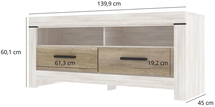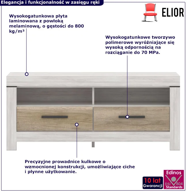 • Dwie pojemne szuflady doskonale nadają się do przechowywania akcesoriów RTV i codziennych drobiazgów.