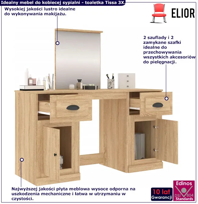 • Kolor: dąb sonoma. W naszej ofercie posiadamy także inne duże toaletki.
