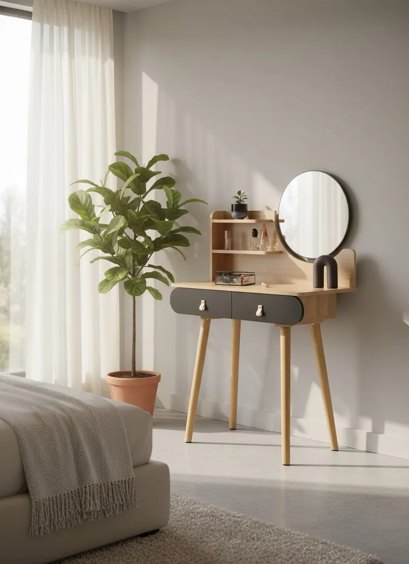 Zdecydowanie polecam tę toaletkę. Design jest minimalistyczny, ale dzięki temu wkomponowuje się wszędzie. Szuflady są bardzo pojemne, a lustro ma odpowiednią wielkość. Toaletka wygląda elegancko i jest bardzo praktyczna. Idealna do codziennego użytku. Dla mnie to był świetny zakup.