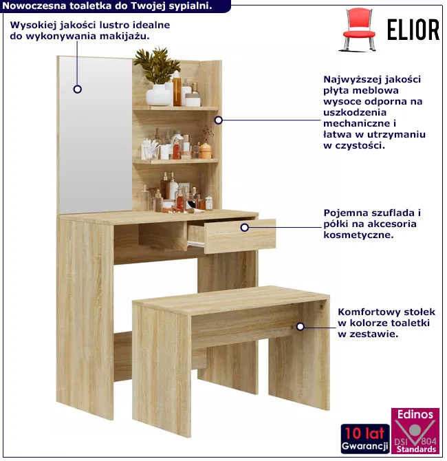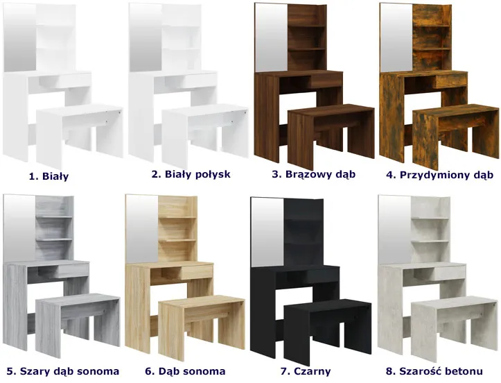 Dotyczy: Toaletka kosmetyczna z lustrem i stołkiem przydymiony dąb - Aleksa