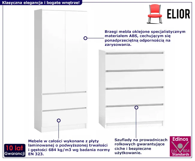 • Kolor: Biały. Kliknij w link i sprawdź także inne komplety komody i szafy w sklepie Edinos.pl. Stwórz swój praktyczny zestaw mebli.
