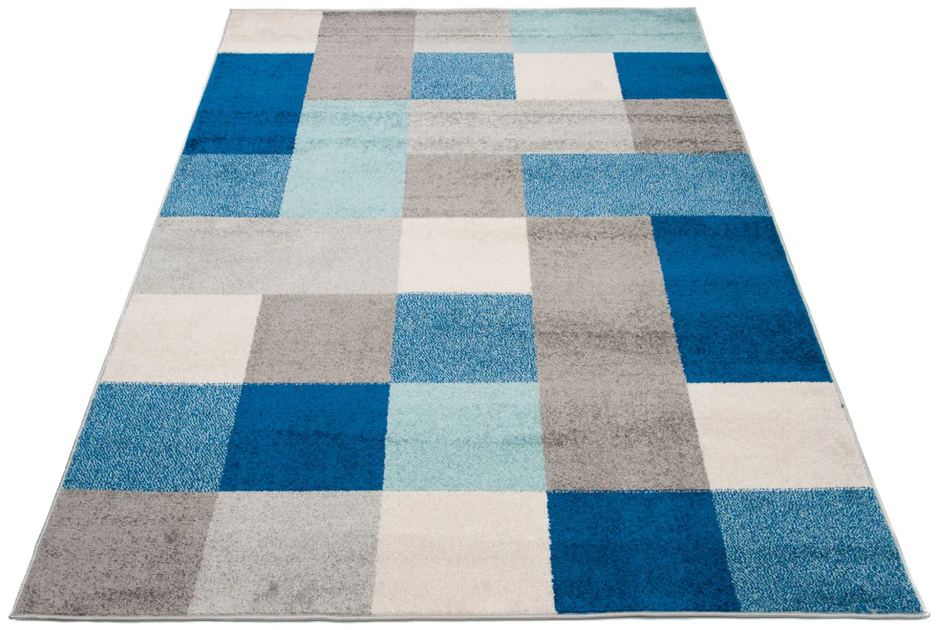Niebieski dywan dziecięcy w kwadraty Ilex 5X