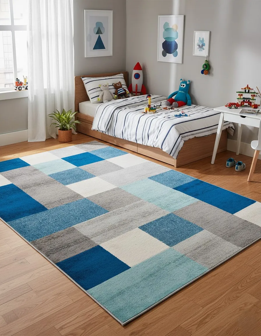 Dywan bardzo dobrze prezentuje się w pokoju dziecka. Kolory są stonowane, ale przyjemne, a wzór w kwadraty sprawia, że całość wygląda nowocześnie i przytulnie. Materiał jest miękki i przyjemny w dotyku, dziecko chętnie się na nim bawi. Produkt dotarł szybko, dobrze zapakowany i bez jakichkolwiek uszkodzeń.