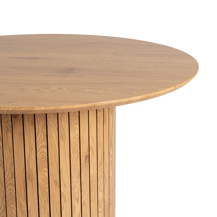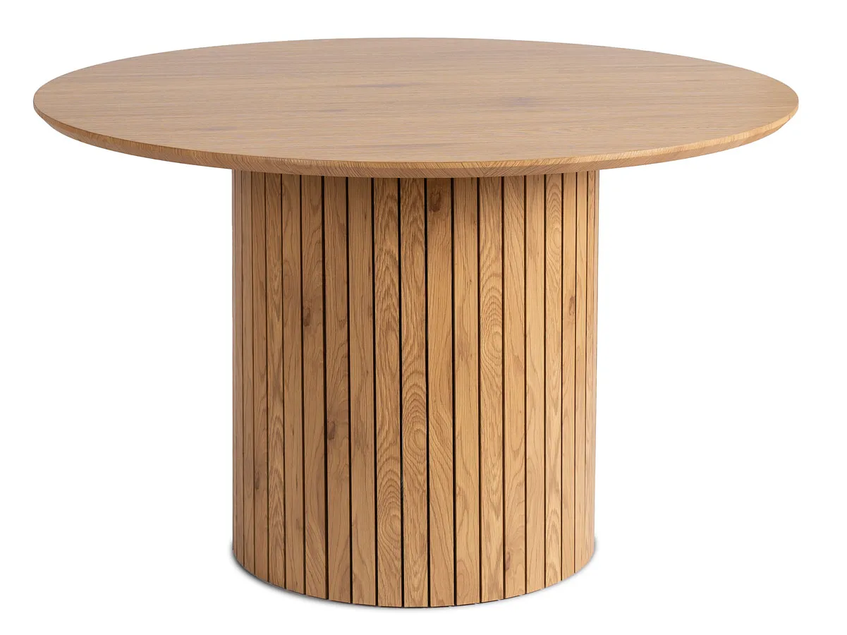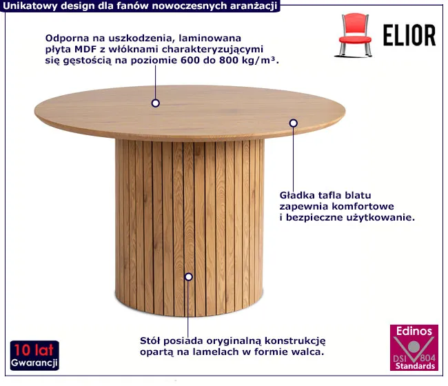 • unikatowa podstawa stołu imitująca lamele tworzy efektowny wizualnie cylinder, który przyciąga uwagę swoją oryginalnością i estetyką