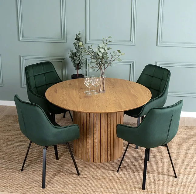 Współczesne meble przybierają różne formy i kształty. Ich design zachwyca miłośników nowoczesnych i unikatowych aranżacji. Zazwyczaj pełnią podwójną rolę; tą oczywistą - praktyczną i tą drugą - dekoracyjną. Dziś z radością prezentujemy Ci taki mebel. Poznaj wyjątkowy stół Sarus marki Edinos Premium - esencję nowoczesnego designu. Jego okrągły blat harmonijnie komponuje się z niezwykle oryginalną podstawą w formie walca, imitującą drewniane lamele. Całość przypomina dzieło natury, które idealnie wpisuje się w kontekst nowoczesnych, minimalistycznych i skandynawskich wnętrz.