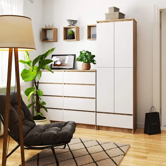 Tracisz czas na zbędne przeszukiwania pudeł w poszukiwaniu tego jednego rachunku do zapłaty? Już dzisiaj zainwestuj w regał Evon 3X, który dzięki czterem pojemnym półkom montowanym według własnej konfiguracji gwarantuje uporządkowane przechowanie wszystkich tych dokumentów, które do tej pory nie miały jednego konkretnego miejsca. Mało tego, dzięki zastosowaniu drzwiczek wszystko to co chcesz schować, zniknie przed wścibskimi oczami, a jednocześnie będzie pod ręką. Szuflada, która porusza się na metalowych prowadnicach rolkowych z blokadą wysuwu zapewnia dodatkowe miejsce do przechowania np. drobnych zabawek dziecka, które ciągle odnajdujesz pod stołem w salonie. Stonowana kolorystyka i prosta forma sprawiają, że regał Evon 3X doskonale nadaje się do wnętrz mieszkalnych lub komercyjnych urządzonych w stylu skandynawskim, jak też minimalistycznym czy nowoczesnym. Świetnie pasuje także do pokoi dziecięcych czy młodzieżowych. Stwórz w swoim domu niepowtarzalny i ciepły klimat z regałem marki Elior!