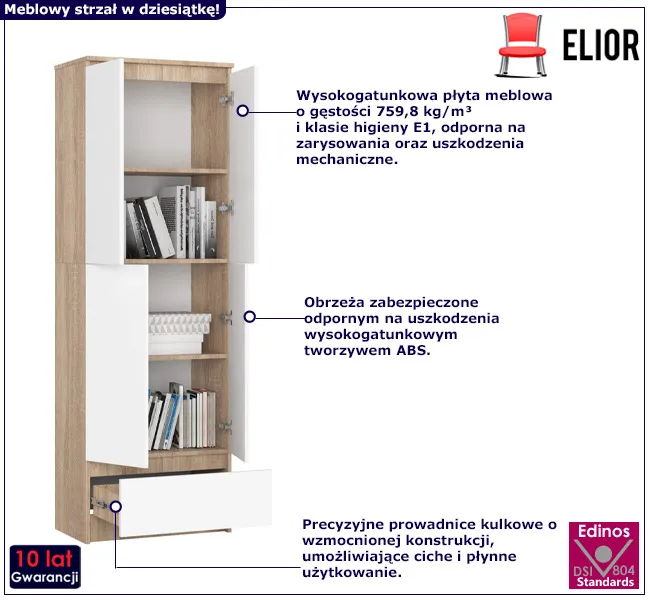 - Kolor: dąb sonoma + biały. Kliknij w link i sprawdź także inne regały zamykane na książki, dokumenty w sklepie Edinos.pl. Stwórz swój praktyczny zestaw mebli.