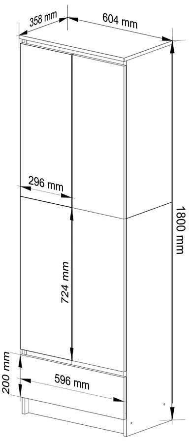 - Wymiary: szerokość: 60 cm, głębokość: 35 cm, wysokość całkowita: 180 cm, głębokość szuflady: 30,5 cm, szerokość szuflady: 51 cm.