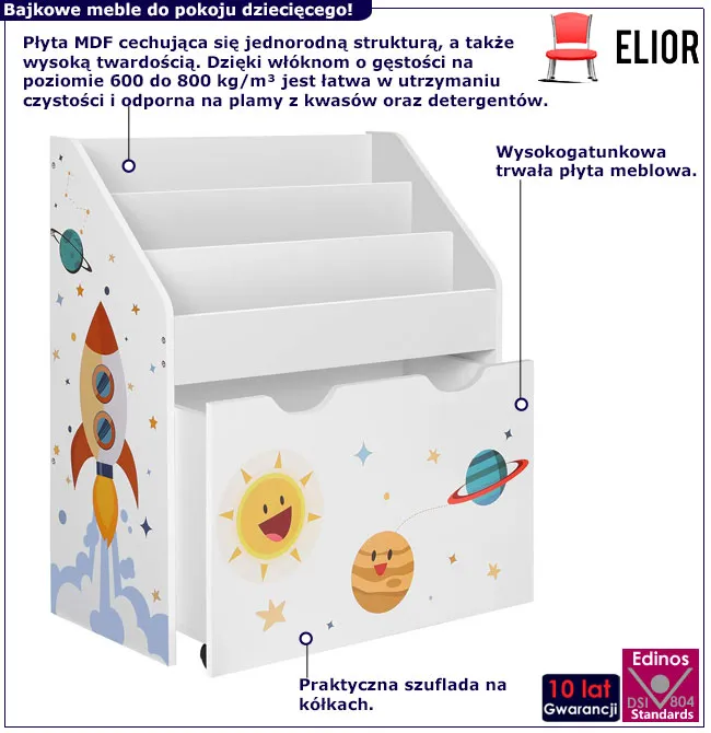 Skandynawski regał dziecięcy na książki z szufladą - Lidofi