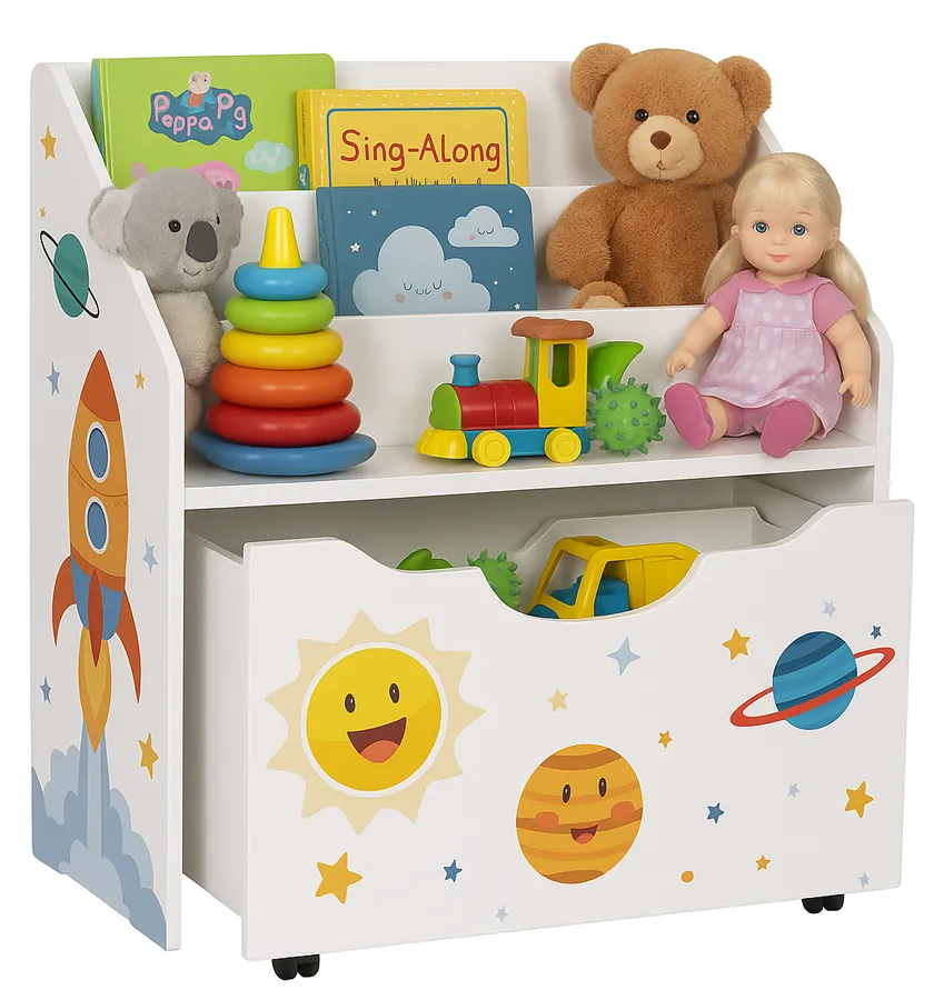• trzy półki umożliwiające wygodne przechowywanie książek i zabawek