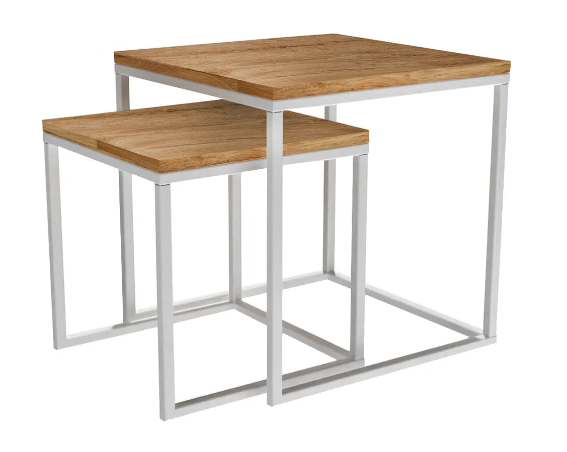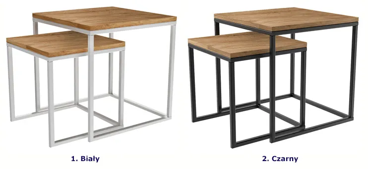 Wymiary: duży stolik: długość: 50 cm, szerokość: 50 cm, wysokość: 52 cm, mały stolik: długość: 40 cm, szerokość 40 cm, wysokość 42 cm.