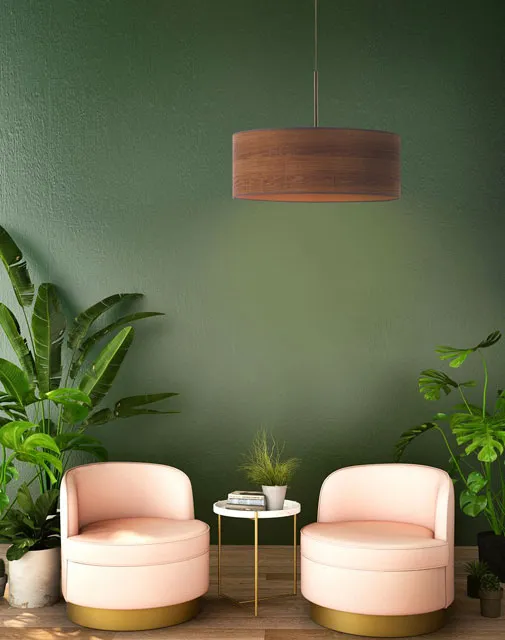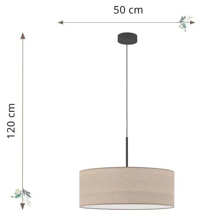 Materiał: stelaż - najwyższej jakości metal, abażur - trwały i odporny materiał PVC o strukturze forniru