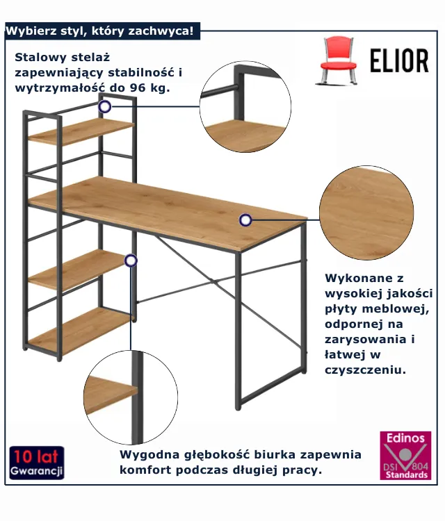 Dotyczy: Biurko do pracy z regałem rustykalny brąz + czarny - Imra