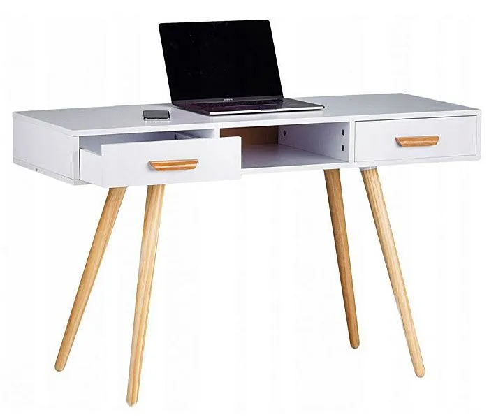 Daj się uwieść niezaprzeczalnemu urokowi skandynawskich wnętrz, kuszących wygodnym, ergonomicznym designem i wyjątkowymi walorami estetycznymi, wprowadzającymi swojski, swobodny klimat do każdego pomieszczenia. Siedząc przy naszym biurku Izuru, będziesz mieć przed sobą wygodny blat o wymiarach 120 x 45 cm, wykonany z praktycznej i niezwykle wytrzymałej płyty MDF. Płyta została powleczona cienkimi filmami melaminowymi uszlachetniającymi powierzchnię i wzmacniającymi jej długotrwałość jak i odporność na ścieranie czy zarysowania. Prosty, nowoczesny kształt mebla nie zaburzy układu pomieszczenia i doda mu klasy. Biel wpasuje się niepostrzeżenie do każdego wnętrza, niezależnie od pozostałej palety kolorystycznej. Lite nóżki sosnowe przełamują skandynawską surowość blatu i dodają biurku szczególnego ciepła, doskonale wpływającego na samopoczucie i zdolności do koncentracji na pracy umysłowej.