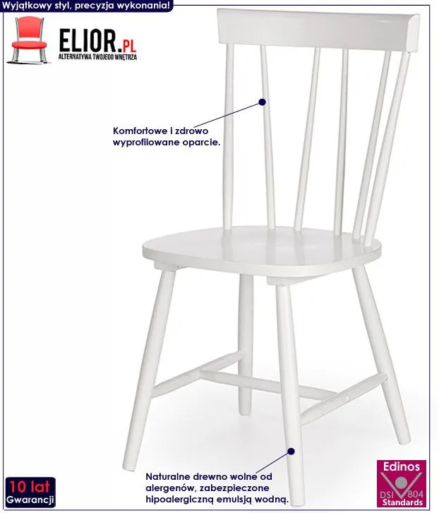 Prawdziwe drewno, naturalne materiały oraz kolory i jakże minimalistyczny kształt bez nadmiernego przerostu formy na treścią... to właśnie główne cechy spokojnego stylu wprost ze Skandynawii. Oryginalne i komfortowe białe krzesło Jupitex w stylu skandynawskim to najnowsze przedsięwzięcie specjalistów w dziedzinie stolarstwa marki Elior. Wykonane zostało w całości z naturalnego drewna wolnego od alergenów, a następnie zabezpieczonego hipoalergiczną emulsją wodną. Stonowana kolorystyka i prosta forma sprawiają, że krzesło doskonale odnajduje się zarówno we wnętrzach urządzonych w stylu skandynawskim, jak też minimalistycznym czy nowoczesnym. Jupitex zapewnia Ci niezapomniane chwile przy stole w gronie przyjaciół i rodziny. Wnieś do swojego wnętrza nastrojowy klimat, harmonizując go z czystością prawdziwej bieli!