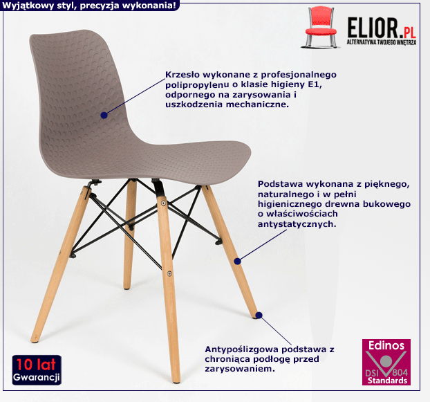 Skandynawskie krzesło Botina jest meblem cechującym się ciekawą, niezwykle gustowną formą. Jest to zasługa między innymi starannie dobranych i niezwykle trwałych materiałów meblarskich. Dzięki nim krzesło użytkuje się naprawdę wygodnie, przyjemnie i co istotne – bez uszkodzeń przez wiele lat. Do produkcji siedziska oraz oparcia krzesła Botina wykorzystano poddany specjalistycznej obróbce, nowoczesny surowiec. Jest to wysokogatunkowy, profesjonalnego polipropylenu o klasie higieny E1, odporny na zarysowania i uszkodzenia mechaniczne. Podstawa mebla to naturalne, w pełni higieniczne drewno bukowe o właściwościach antystatycznych. Podstawa została wzmocniona metalowymi rurkami, zwiększającymi stabilność nóżek krzesła. Jakże to istotne, by meble, w które inwestujemy, cechowało wytrzymałe, staranne wykonanie. Na szczęście z fantastycznym, pełnym wdzięku krzesłem Botina nie trzeba się o to martwić! Ten pełen modernistycznego, a przy tym interesującego charakteru mebel wciąż cieszy oko niebywałym urokiem. Nowoczesne krzesło Botina posiada bezsprzecznie wiele zalet – trwałość, stabilność, dokładne wykonanie, funkcjonalizm i oczywiście świeżą, pełną klasy i pomysłowości prezencję. Chyba każdy przyzna, że warto mieć tak ekstrawagancki i funkcjonalny mebel w swoich starannie i przemyślanie zaaranżowanych i wypielęgnowanych stylowo przestrzeniach.