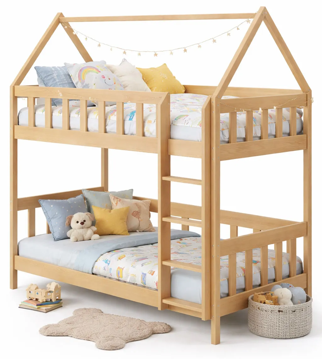 Dotyczy: Szare piętrowe 2-osobowe łóżko dziecięce domek - Varcon 3X 190x80 cm