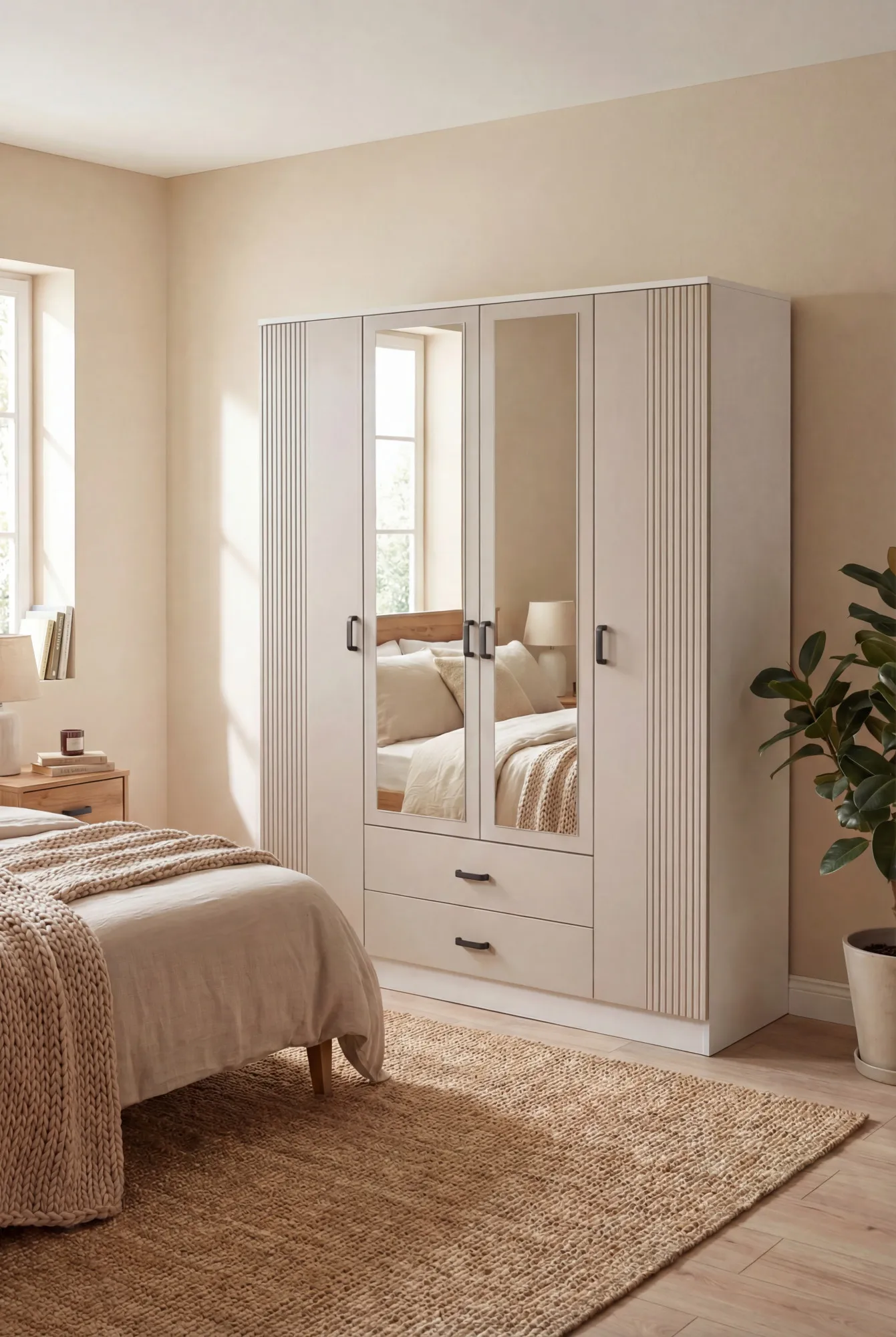 Dotyczy: Kaszmirowa czterodrzwiowa szafa uchylna z lustrem - Veloris