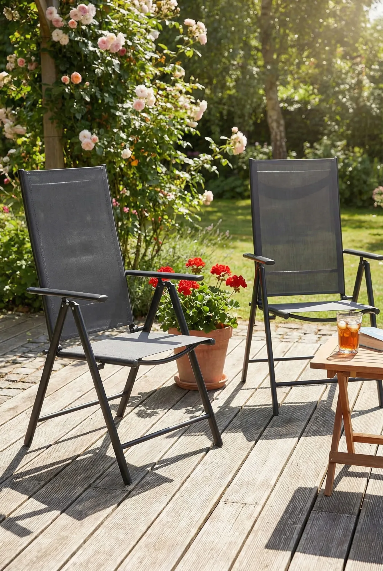 - Krzesła idealne do ogrodu, na plażę, kemping, taras, balkon, werandę lub patio oraz do kawiarnianych ogródków i beach barów.