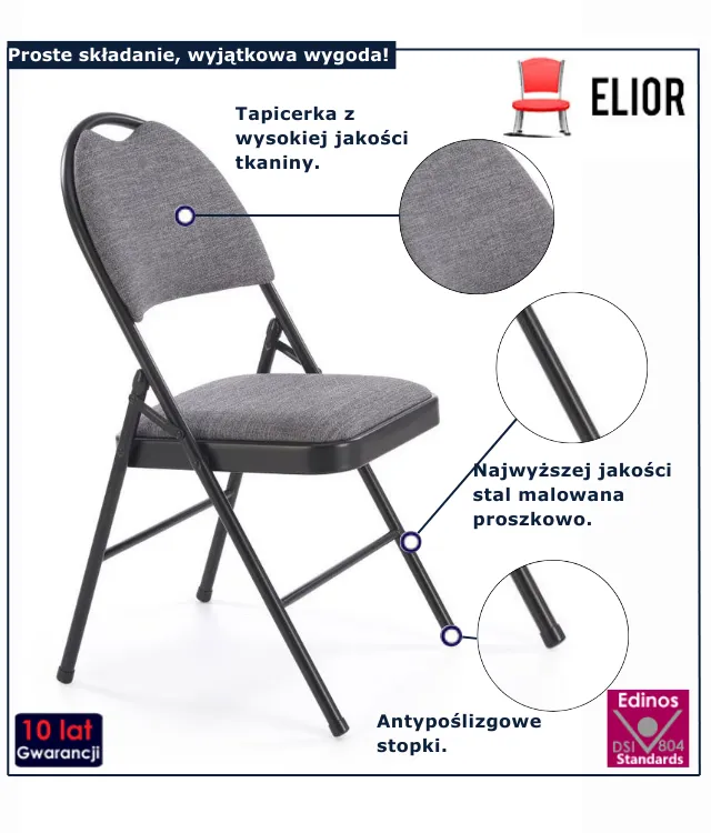 • Łatwe składanie – w kilka sekund przygotujesz je do użycia lub schowasz w ciasnej przestrzeni.