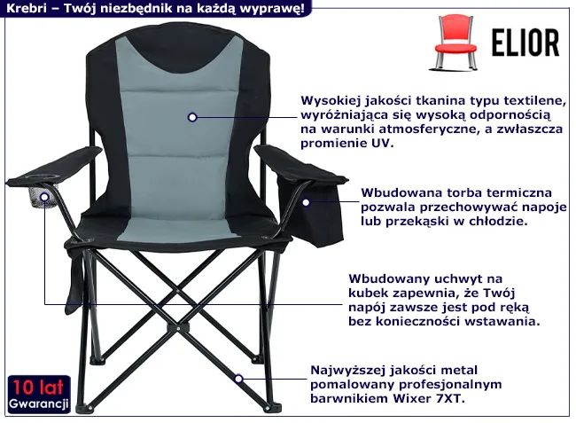Krzesło kempingowe Tymja czarny+szary
