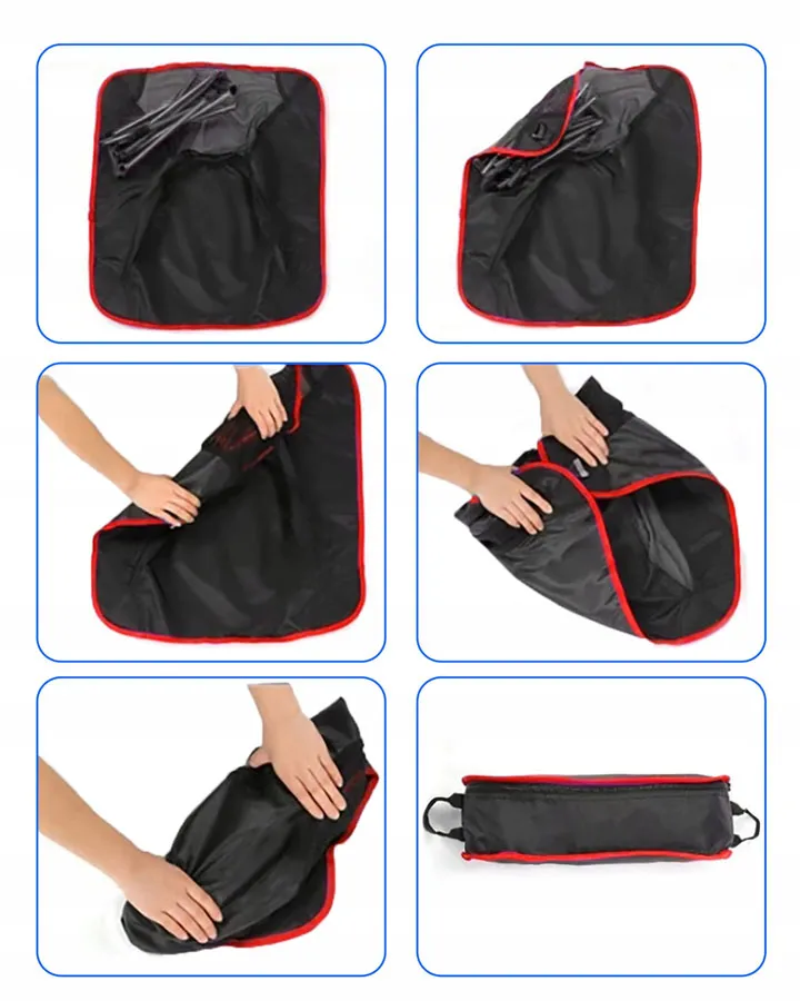 • łatwo składa się do kompaktowych rozmiarów, co pozwala na wygodne przechowywanie i transport w dołączonej torbie.