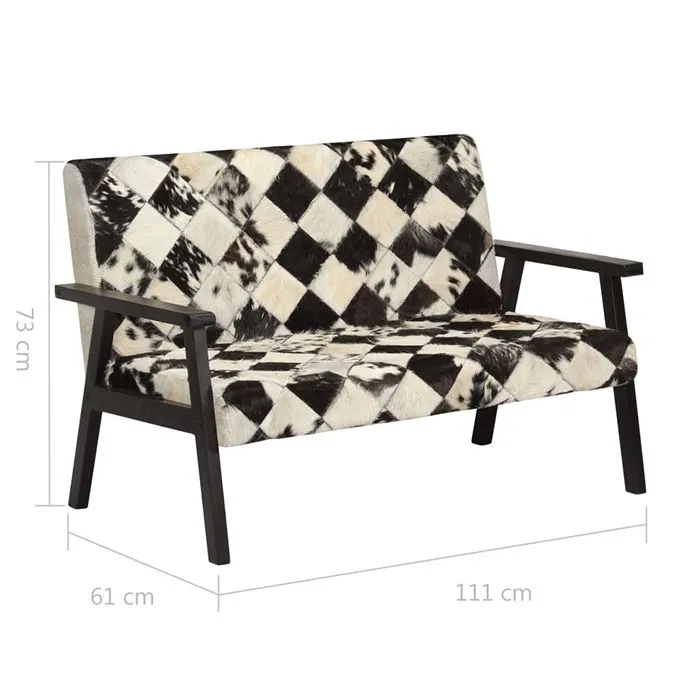 Sofa Max z naturalnej koziej skóry – biało-czarna