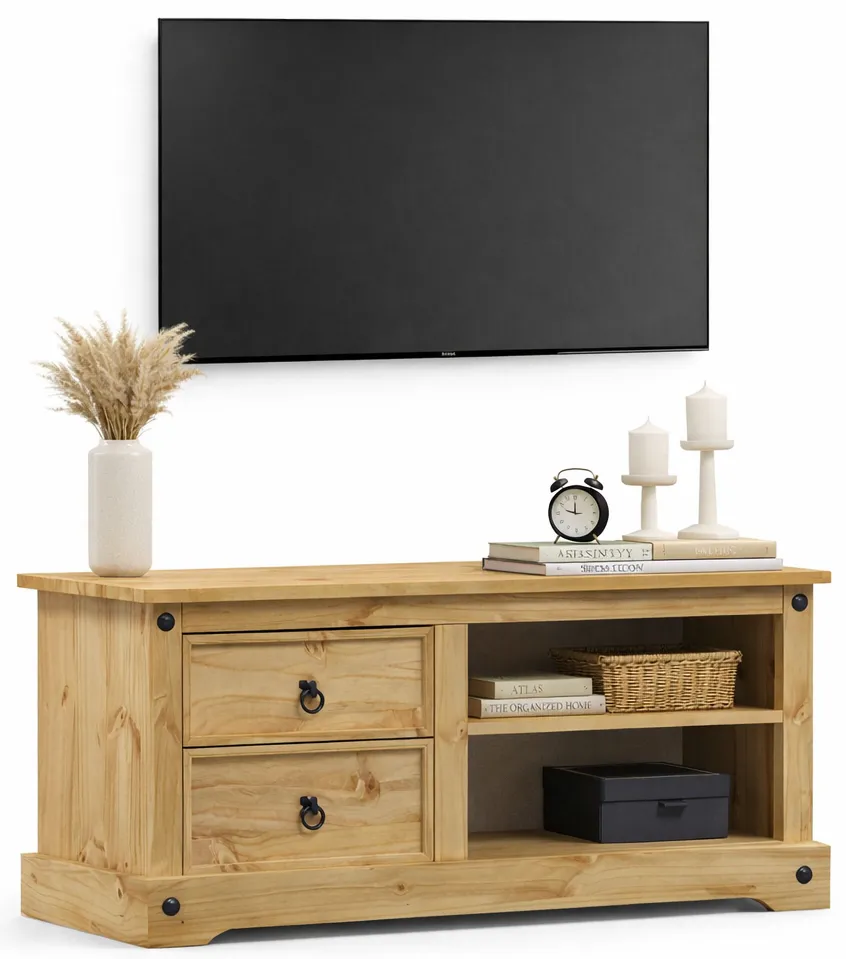 Sosnowa szafka RTV z 2 szufladami - Rodemo 3X
