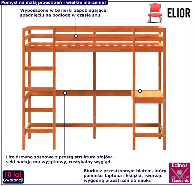 Dotyczy: Klasyczne białe łóżko sosnowe z biurkiem na atresoli 90x200 - Elba 6X
