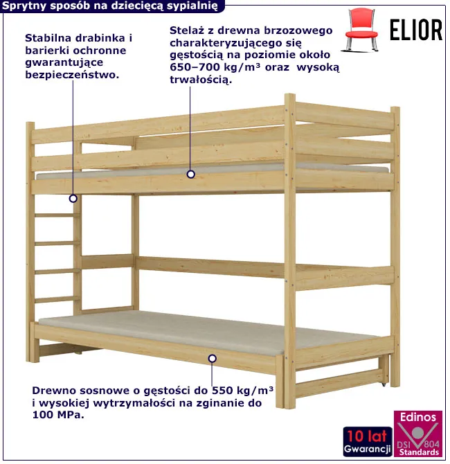 Sypialnia dziecięca z drewnianym piętrowym łóżkiem Tifii 4X naturalne lakierowane
