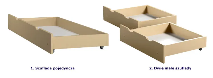 - do wyboru jedna pojedyncza szuflada lub dwie mniejsze idealne na pościel lub zabawki,