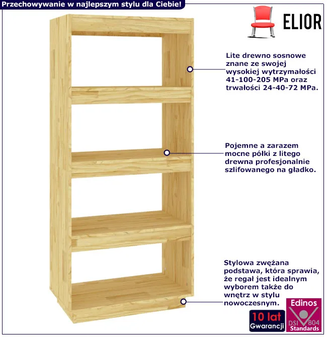 Dotyczy: Skandynawski regał z litego drewna miodowy brąz - Lika 8X