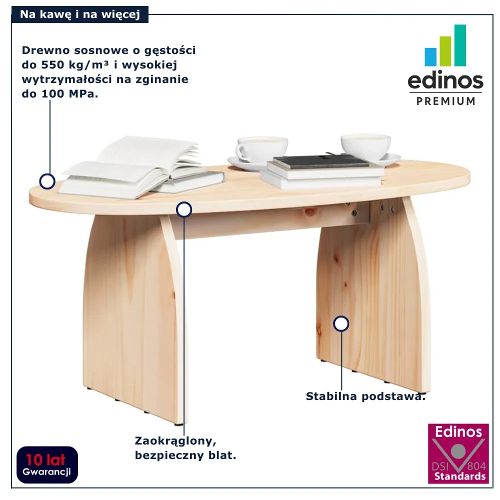 Dotyczy: Skandynawski owalny stolik kawowy woskowy brąz - Werini