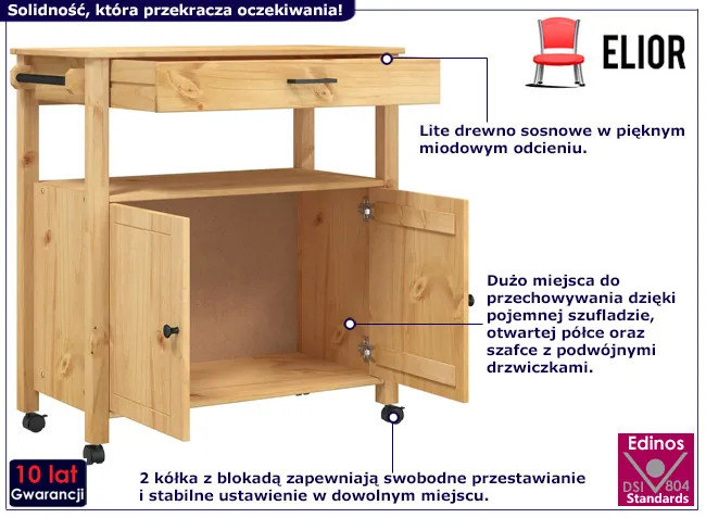 • Kolor: naturalny. Kliknij w link i sprawdź także inne wózki kuchenne w sklepie Edinos.pl.