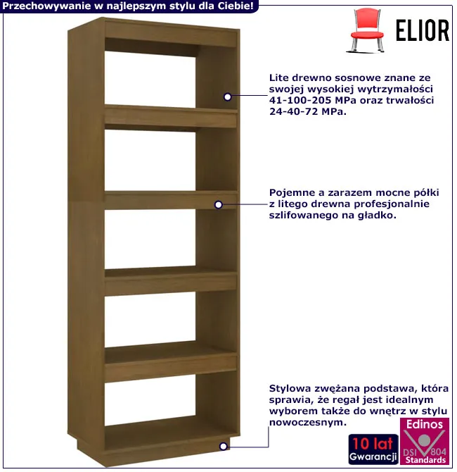 Infografika sosnowy regał drewniany miodowy brąz Lika 9X